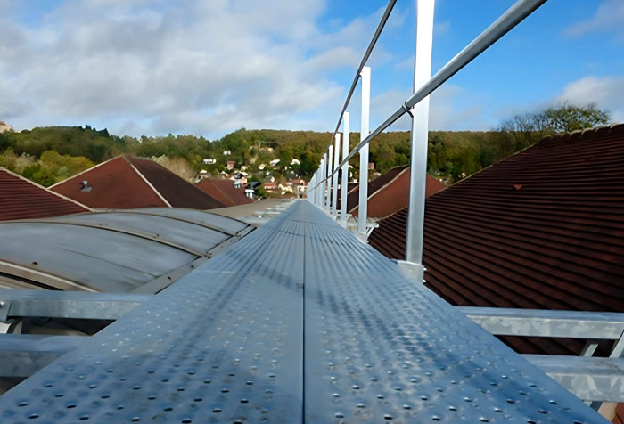 Instalação de passadiços e plataformas que permitem circulação segura em altura e acesso a zonas técnicas.